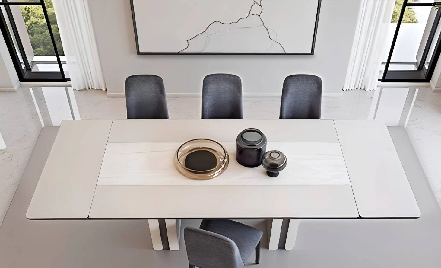 採用石灰華的霧面粗陶、現代線條、弧形邊線,